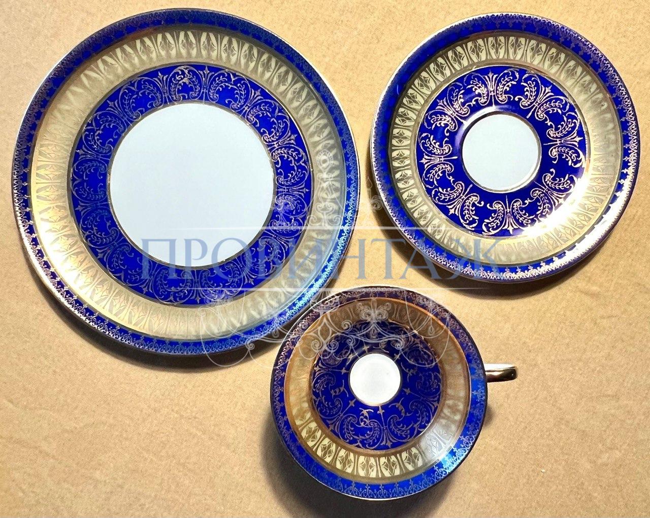 Чашка:11,5х6см, объем 0,15 л, блюдце 15см, тарелка 19,5см