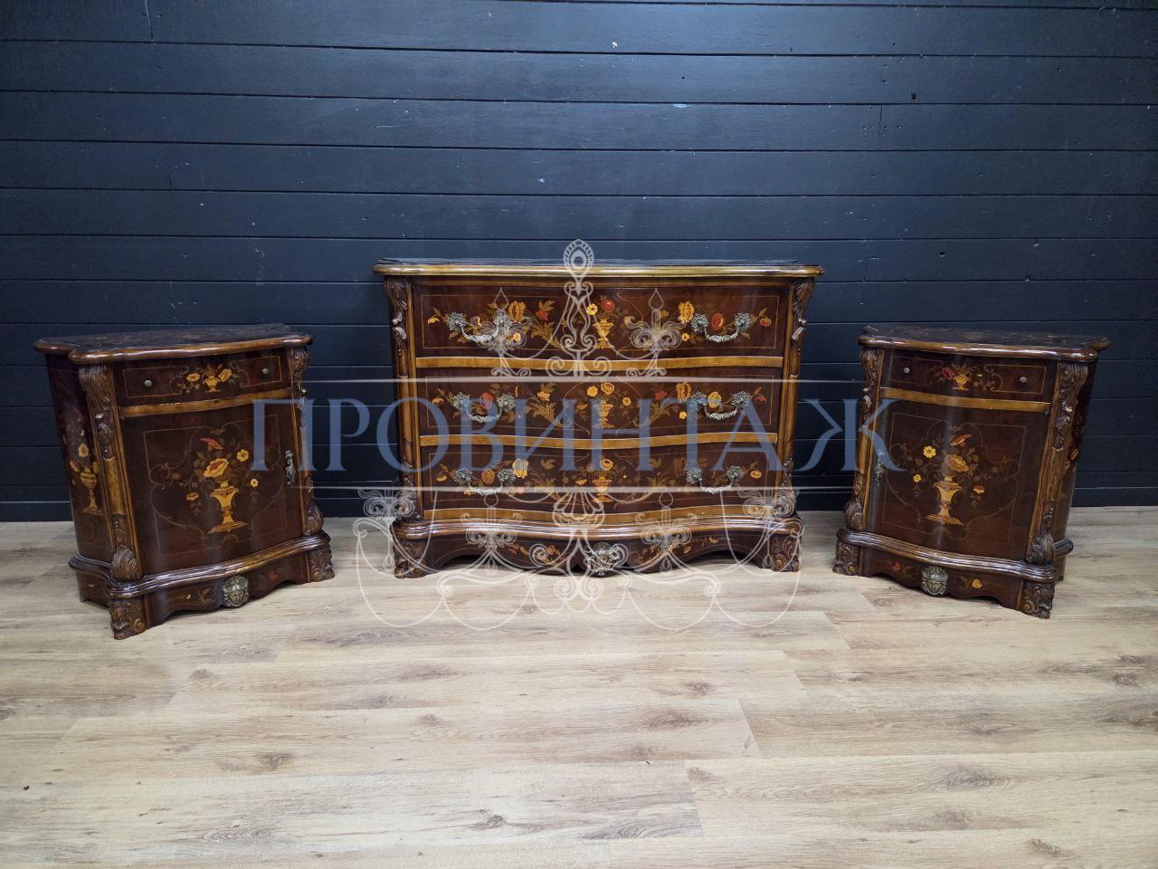 Комплект: Комод и Тумба 2 штуки в стиле Людовика XVI