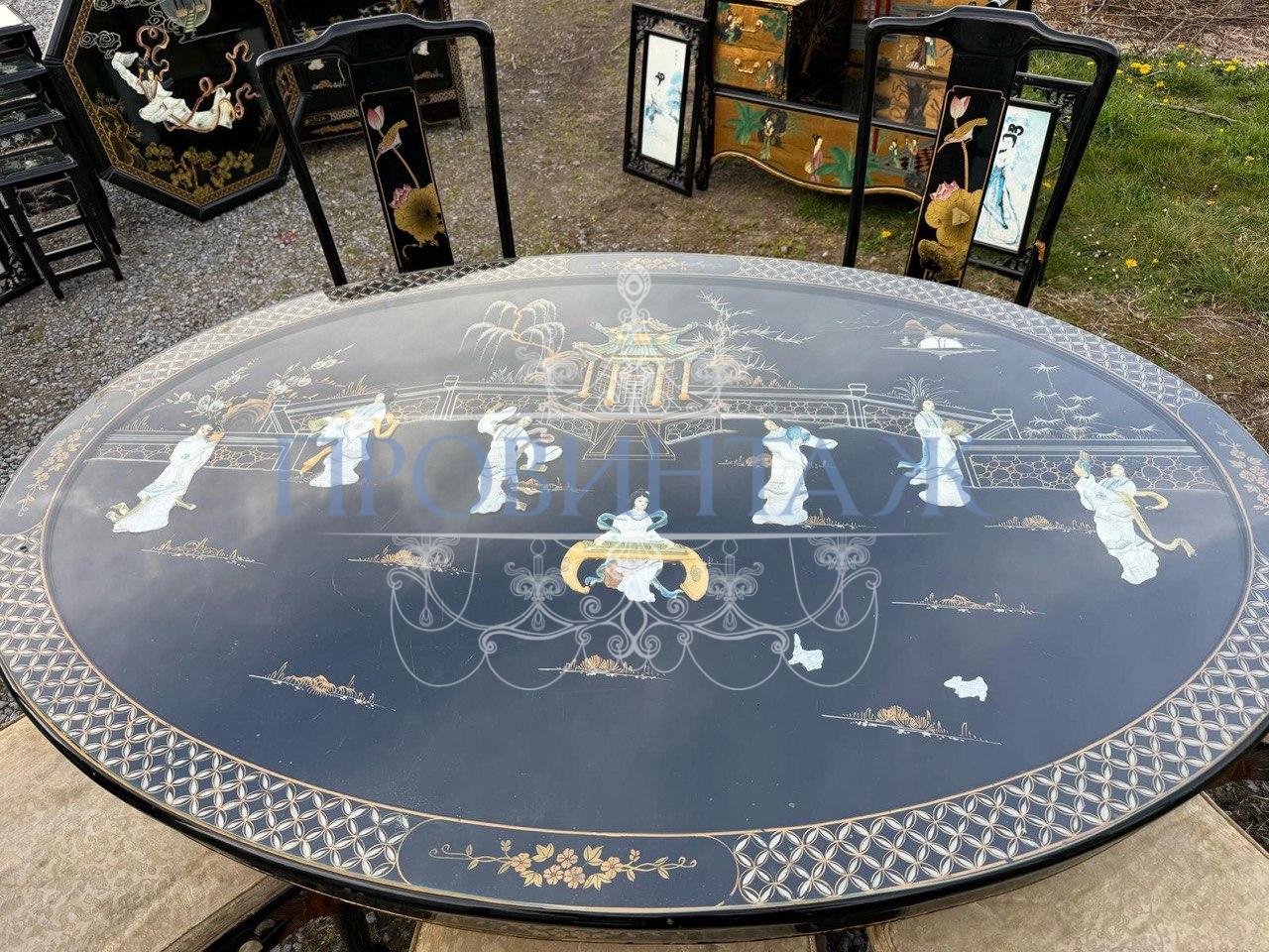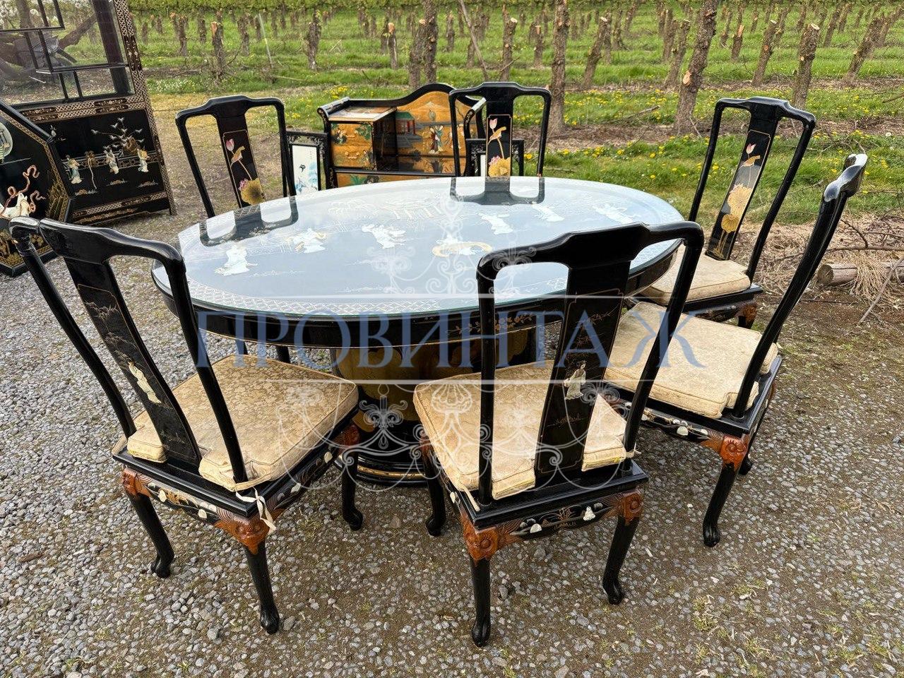 Комплект обеденный в стиле шинуазри: Стол и Стул 6 штук