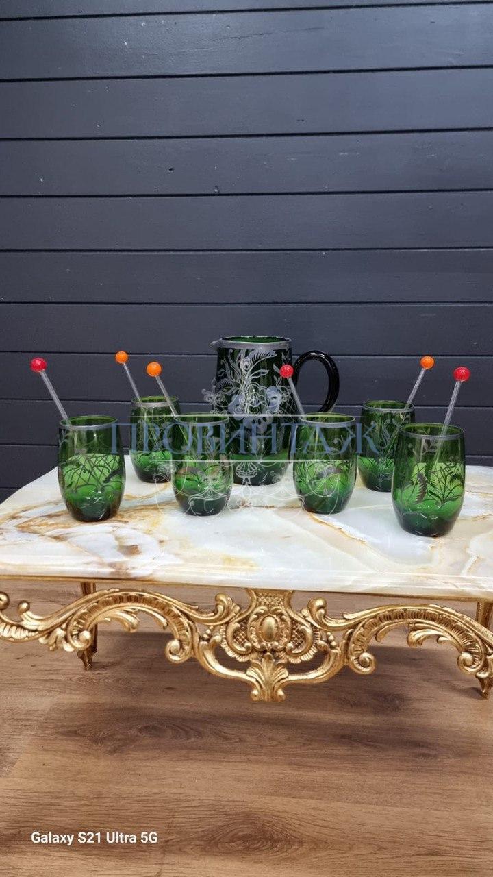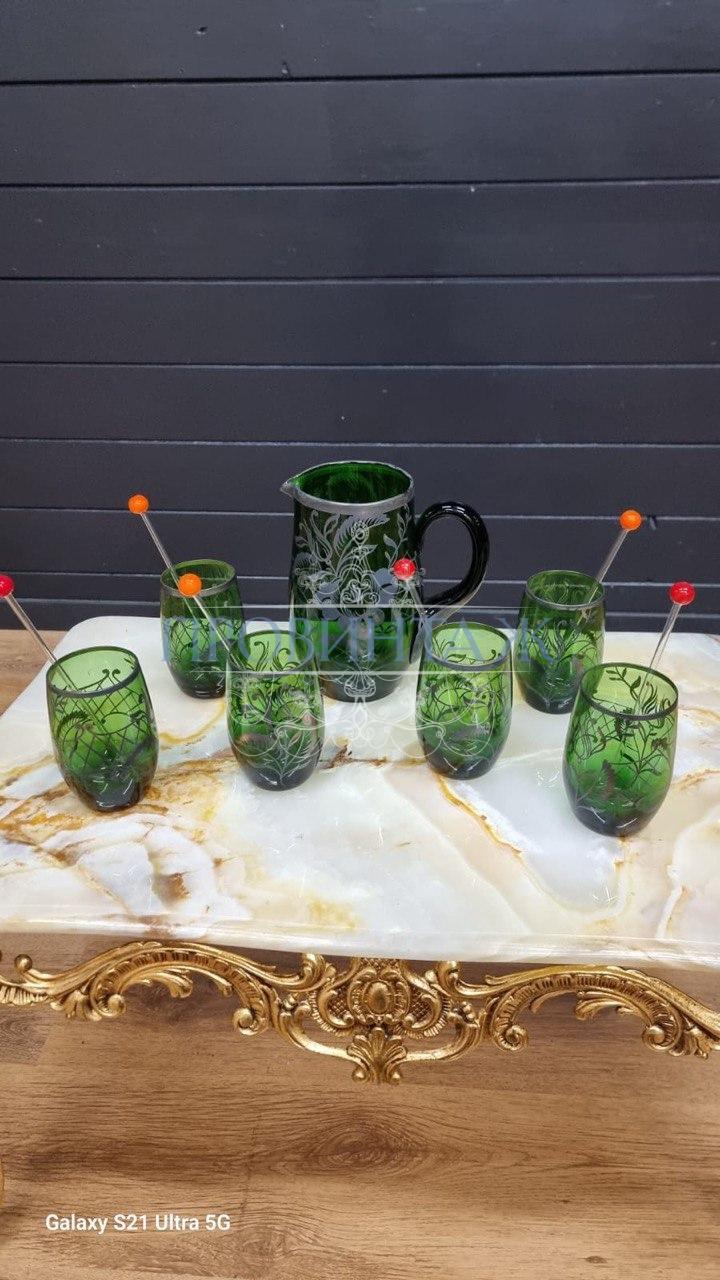 | Размер | Графин высота 21 длина 21 ширина 13см Стаканы высота 12 объём 8см |